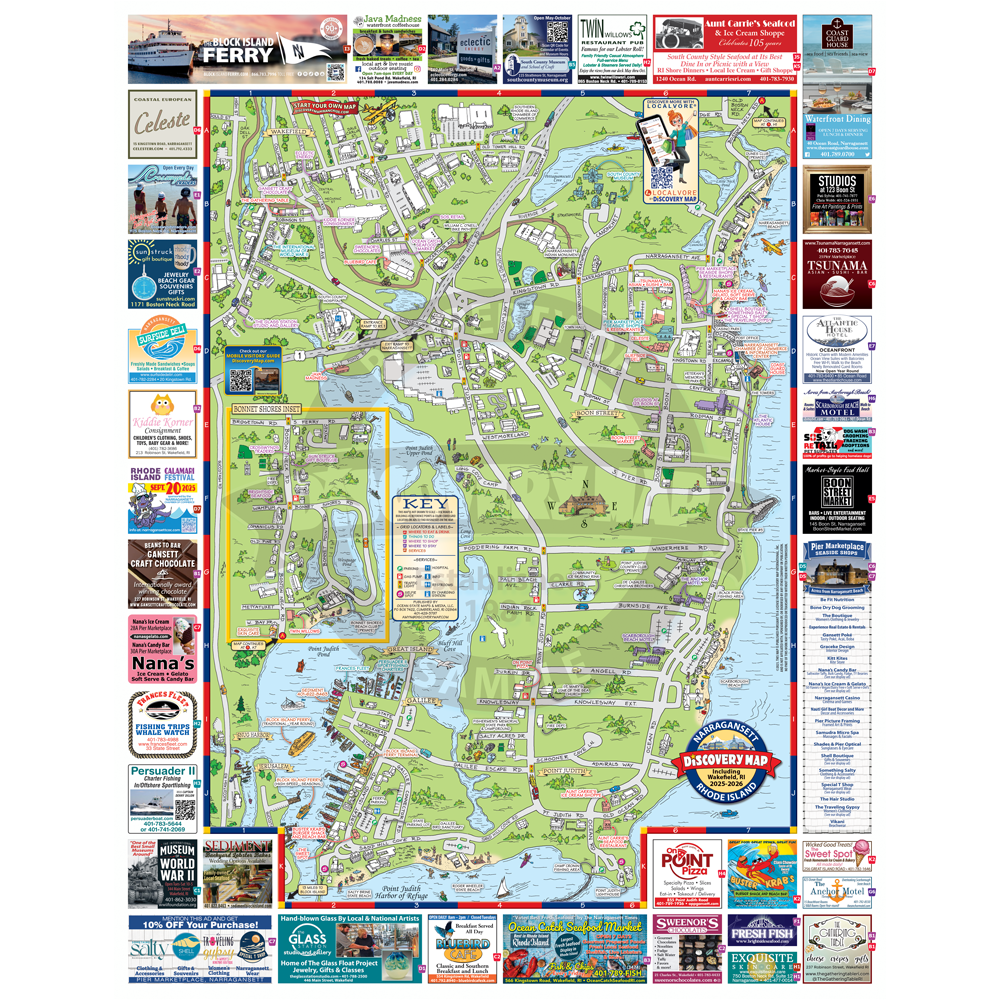 Illustrated Discovery Map of Narragansett and Block Island, RI. Folded