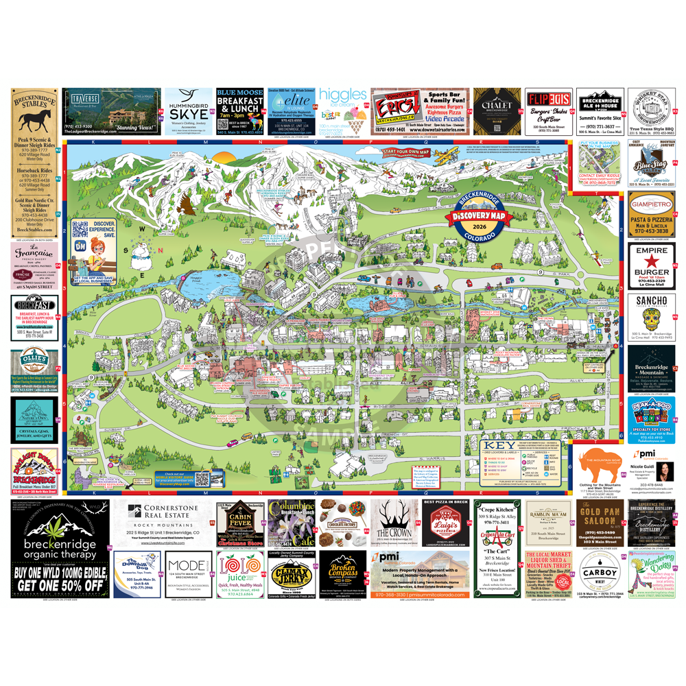 Illustrated Discovery Map of Breckenridge, CO. Folded