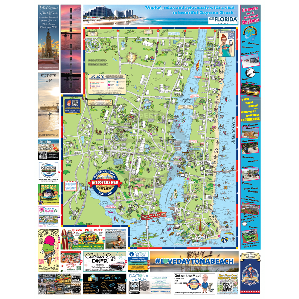 Illustrated Discovery Map of Daytona Beach, FL. Folded