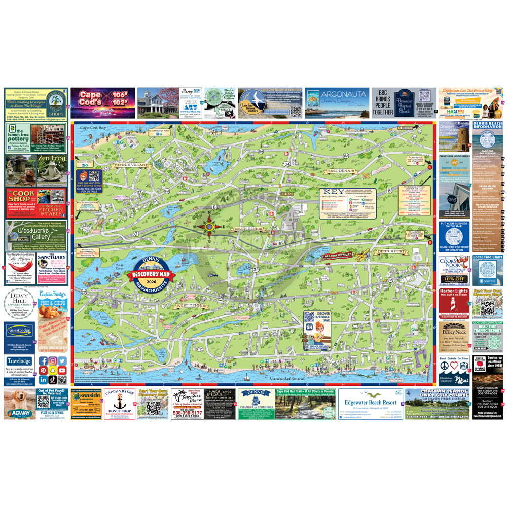 Illustrated Discovery Map of Dennis & Harwich, MA. Folded