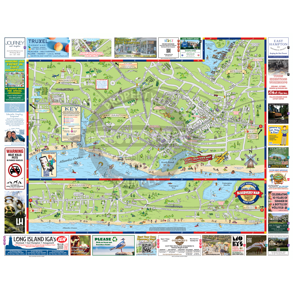 Illustrated Discovery Map of East Hampton, NY. Folded