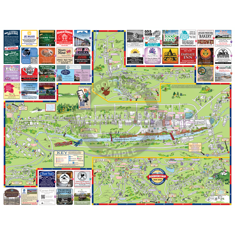 Illustrated Discovery Map of Franconia Notch, NH featuring Lincoln and Littleton. Folded.