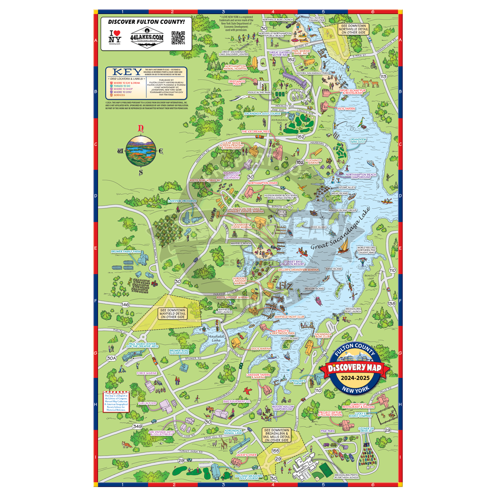 Illsutrated map of Fulton Conty, NY. Featuring Mayfield, Broadalbin, and Northville. Folded