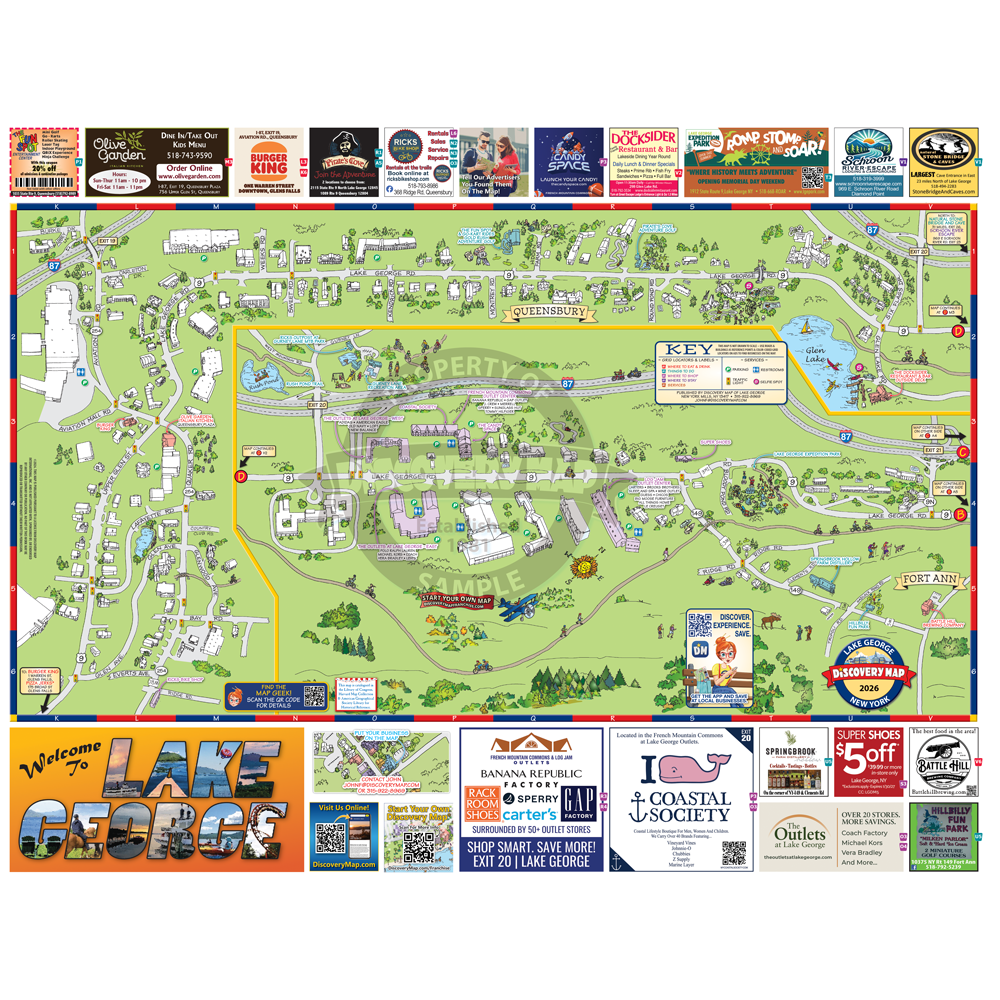 Illustrated Discovery Map of Lake George, NY. Folded