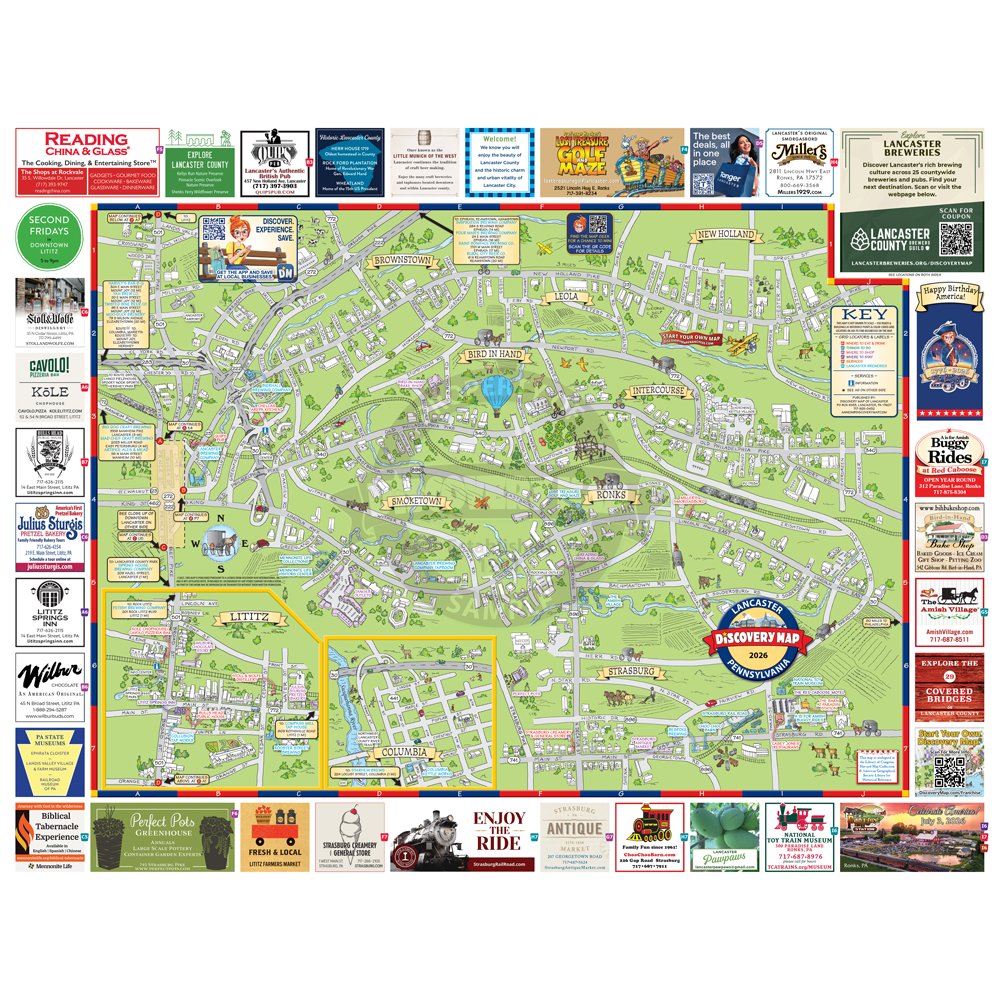 Illustrated Discovery Map of Lancaster, PA. Folded