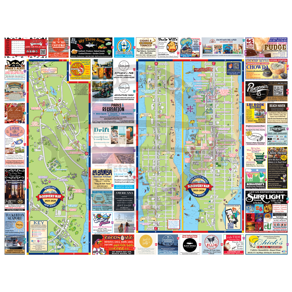 Illustrated Discovery Map of Long Beach Island, NJ. Folded