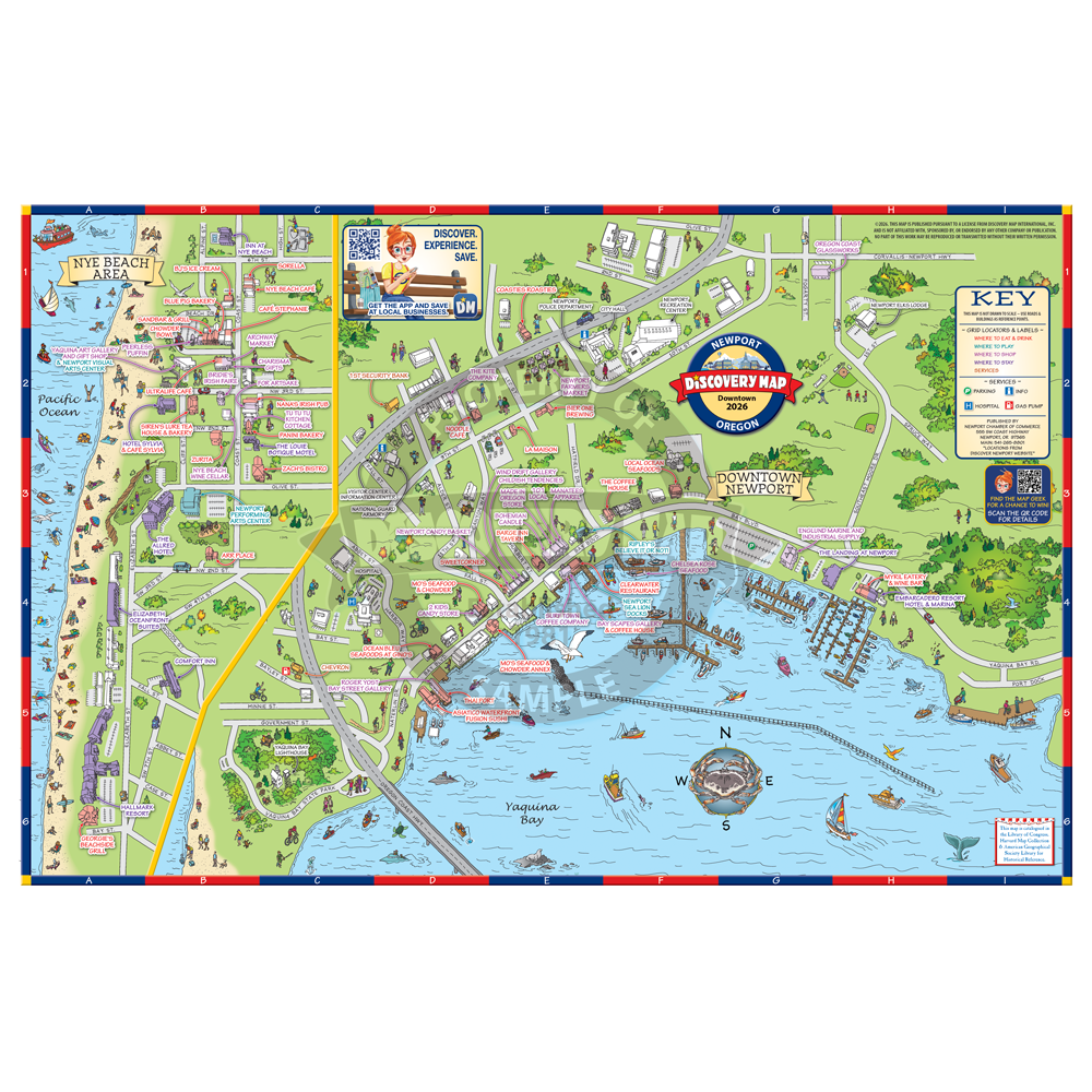 Illustrated map of Newport, OR. Folded.