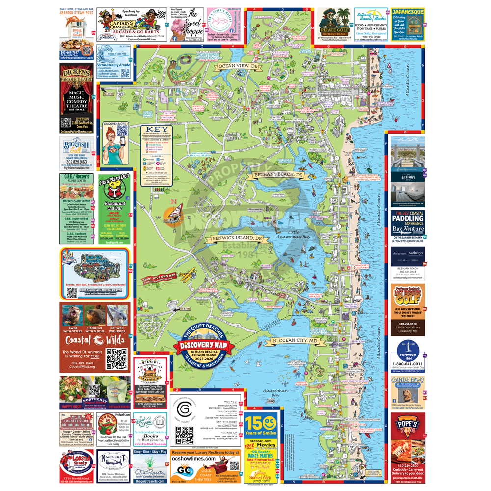 Illustrated Discovery Map of Ocean City, MD. Folded