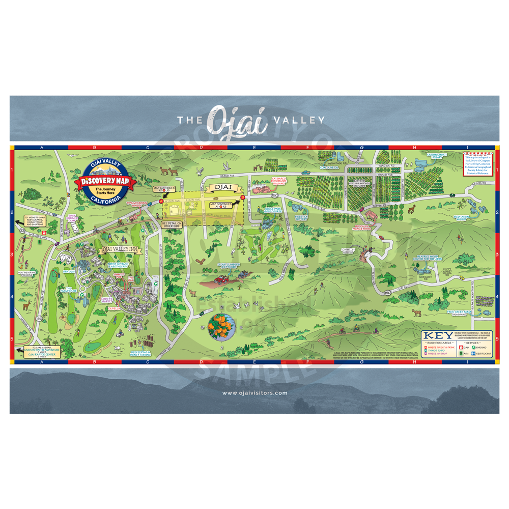 Illustrated Discovery Map of Ojai Valley, CA. Folded
