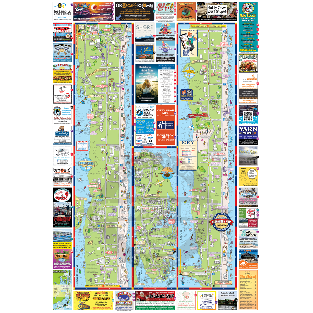Illustrated Discovery Map of Outer Banks, NC. Folded