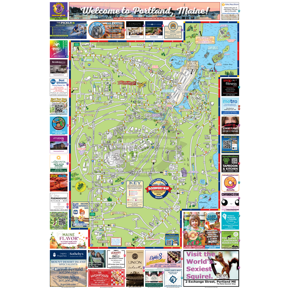 Illustrated Discovery Map of Portland, ME. Folded
