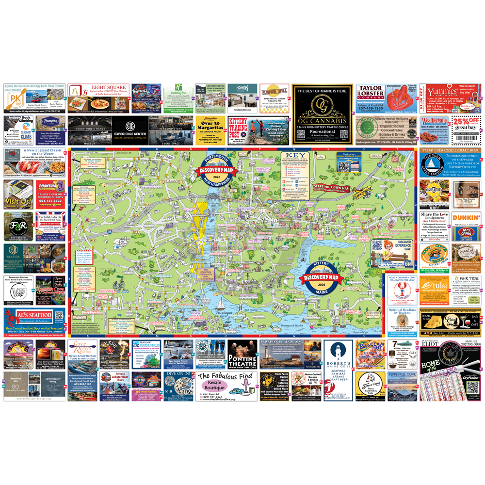 Illustrated Discovery Map of Portsmouth & Kittery, NH. Folded