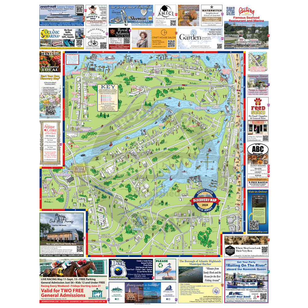 Illustrated Discovery Map of Sandy Hook, NJ featuring Red Bank and Sea Bright. Folded