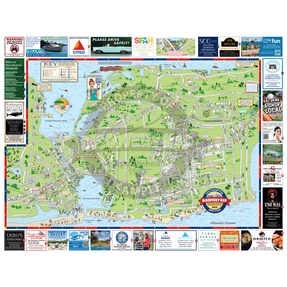 Illustrated Discovery Map of Southampton, NY featuring Bridgehampton. Folded