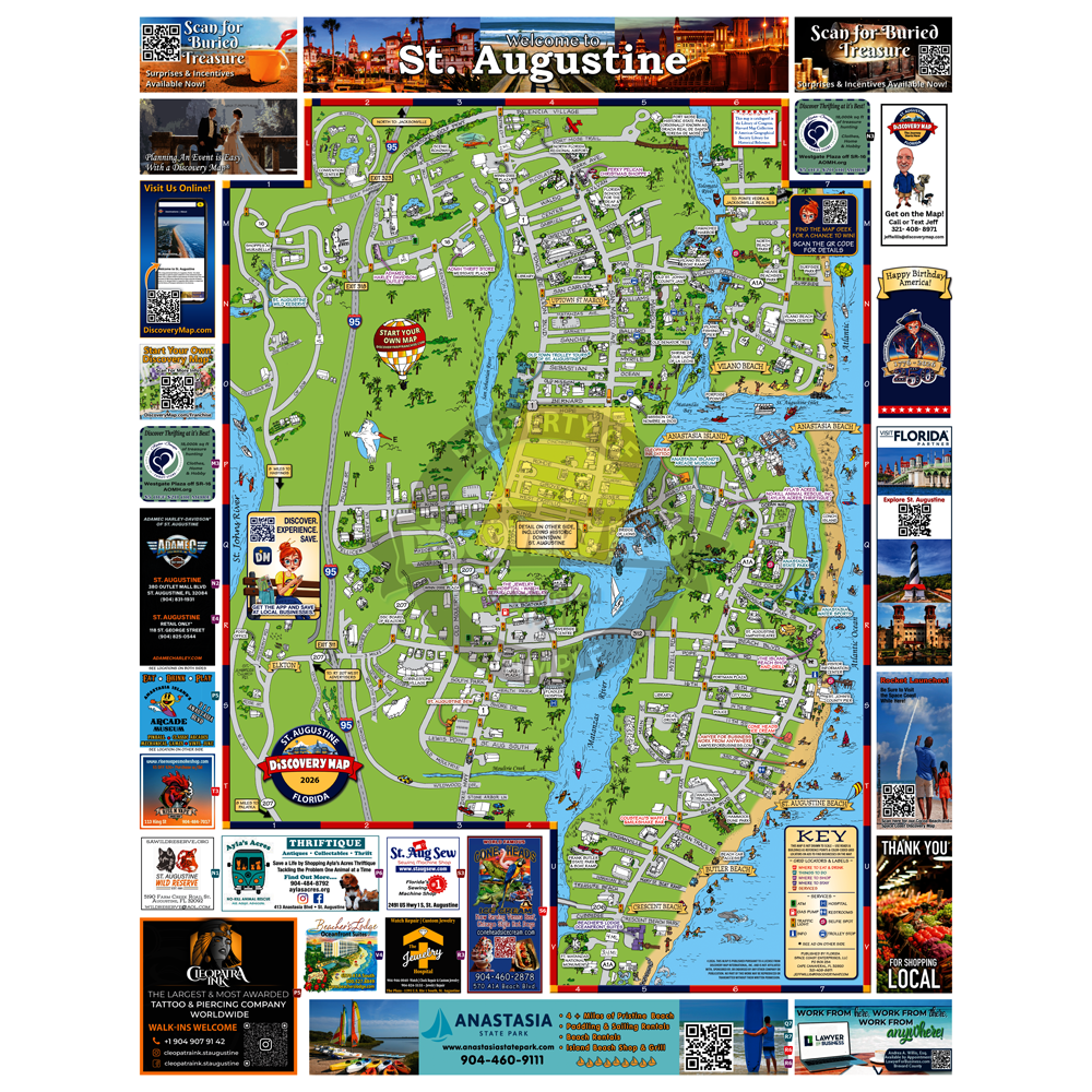 Illustrated Discovery Map of St. Augustine, FL. Folded