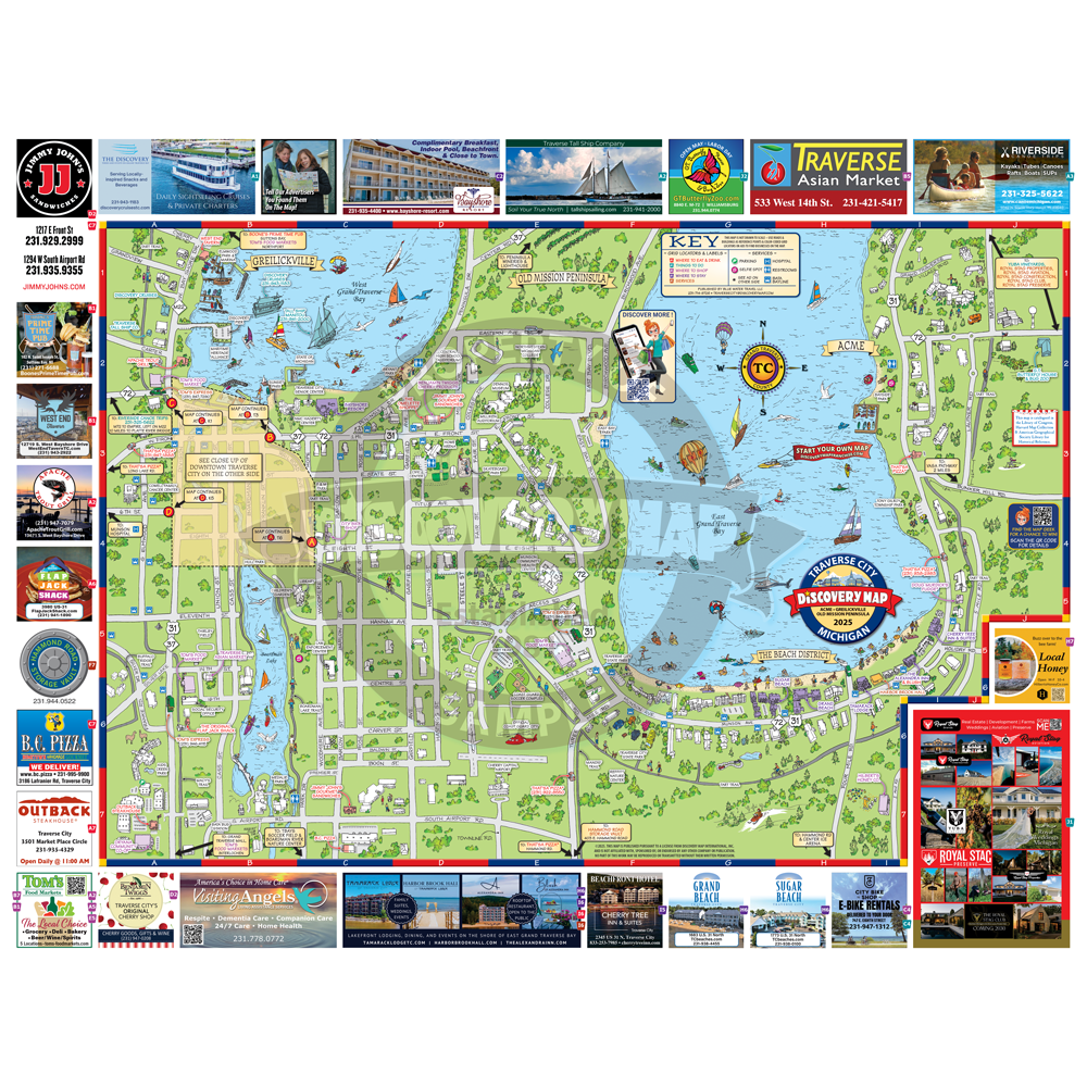Illustrated Discovery Map of Traverse City, MI. Folded