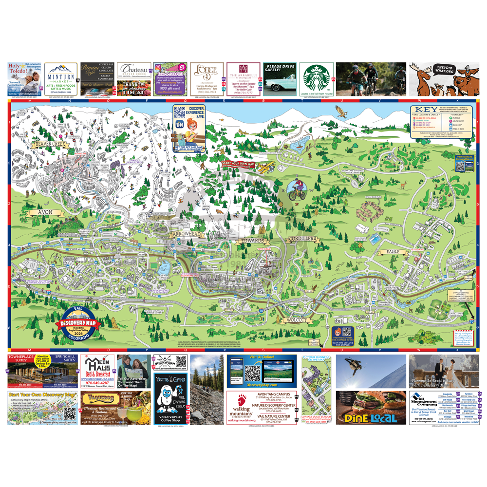 Illustrated Discovery Map of Vail, CO featuring Beaver Creek. Folded
