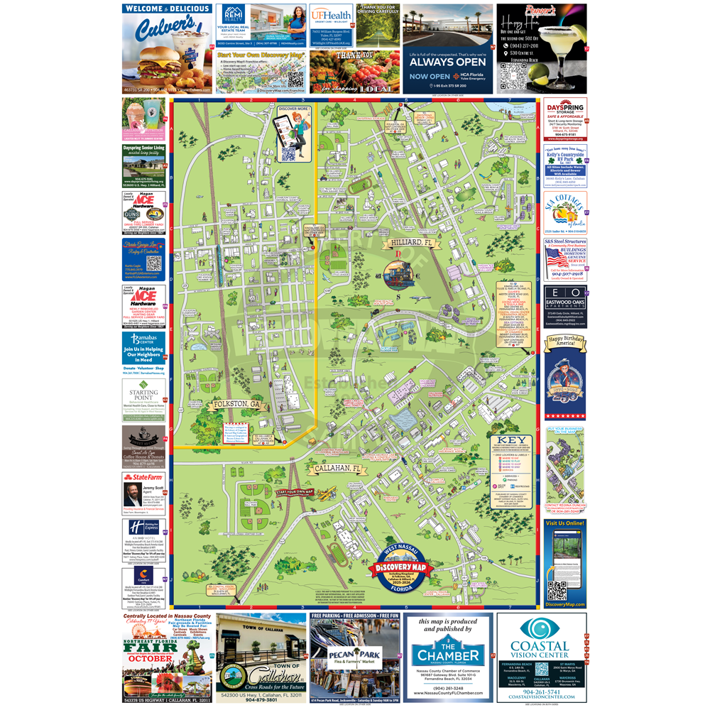 Illustrated Discovery Map of West Nassau County, FL featuring Kingsland and Callahan. Folded