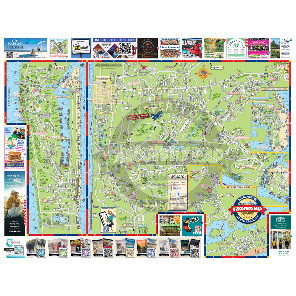 Illustrated Discovery Map of Wilmington, NC. Folded